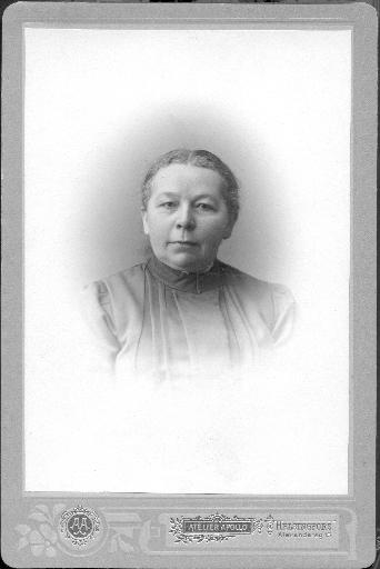 614. Augusta Heikel o.s. Hellman (1). Aika: tammikuu 1904. Paikka: Helsinki. Kuvaaja: Atelier Apollo, Helsinki. |