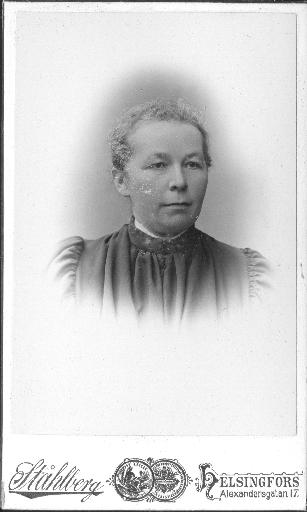 728. Augusta Heikel o.s. Hellman (1). Aika: 1896. Paikka: Helsinki. Kuvaaja: Ståhlberg, Helsinki. |