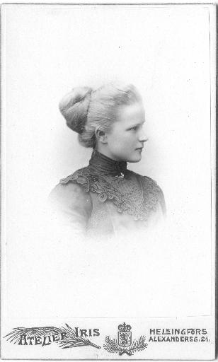 313. Ruusu Merikallio o.s. Rantonen (Da). Kuvaaja: Atelier Iris, Helsingfors, Alexandersg. 21. |