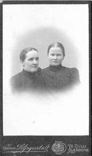 Henkilöt: Anni (7), ? (D?) Aika: 1909. Paikka: Oulu. Kuvaaja: Ina Liljeqvist & Co, Oulu. |